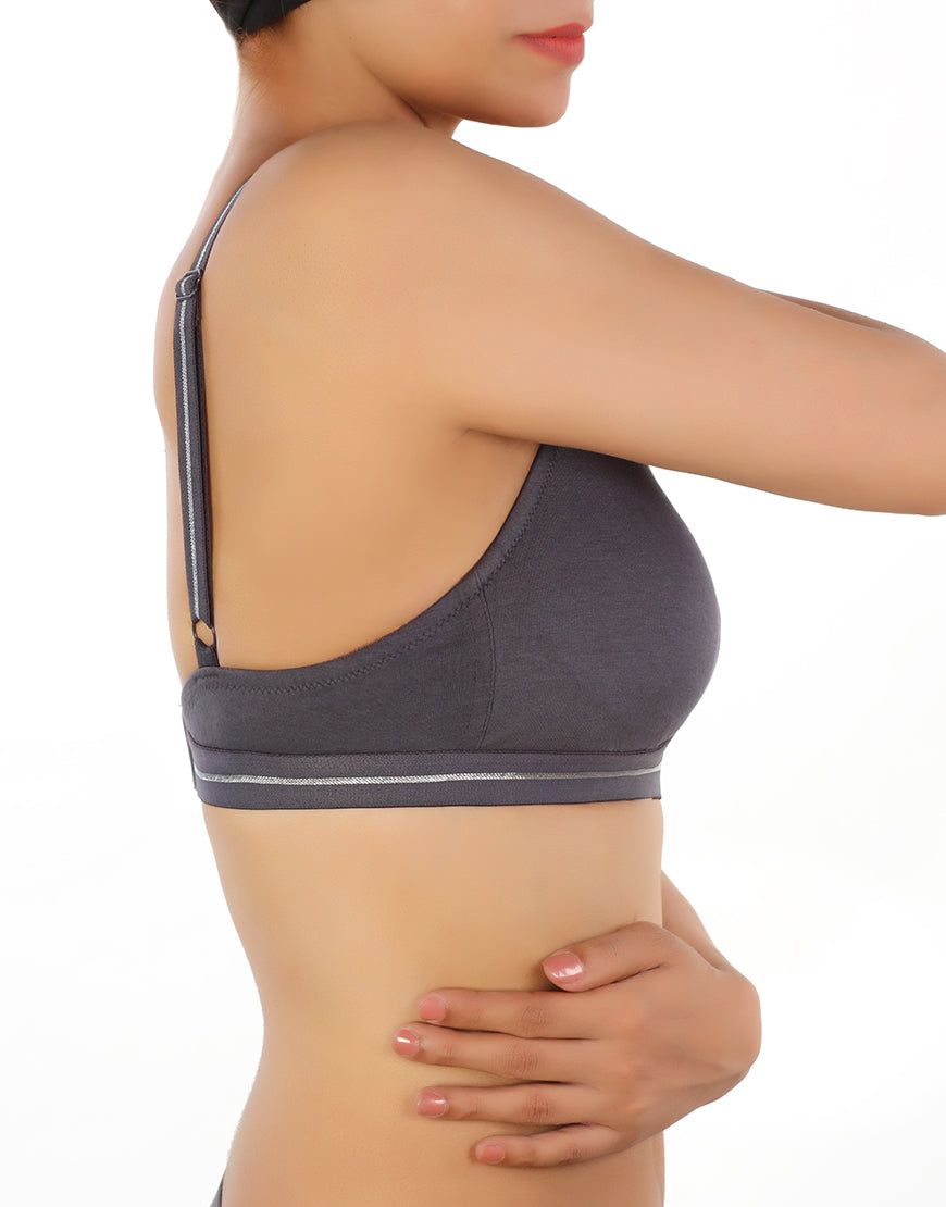 LOSHA DOUBLE LAYERED COTTON WIREFREE BRA WITH GLITTER ELASTIC WAIST BAND -GREY